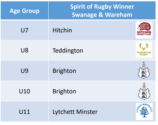 Spirit of Rugby awards will be presented for U7 through to U11, whilst Winner and Runner Up trophies will be up for grabs in the older age groups and all players will receive participation medals