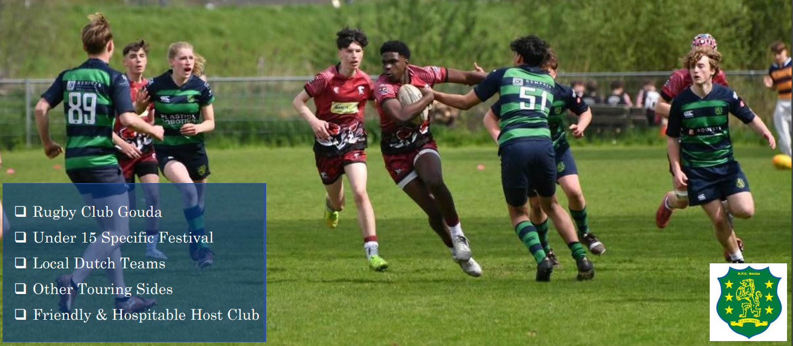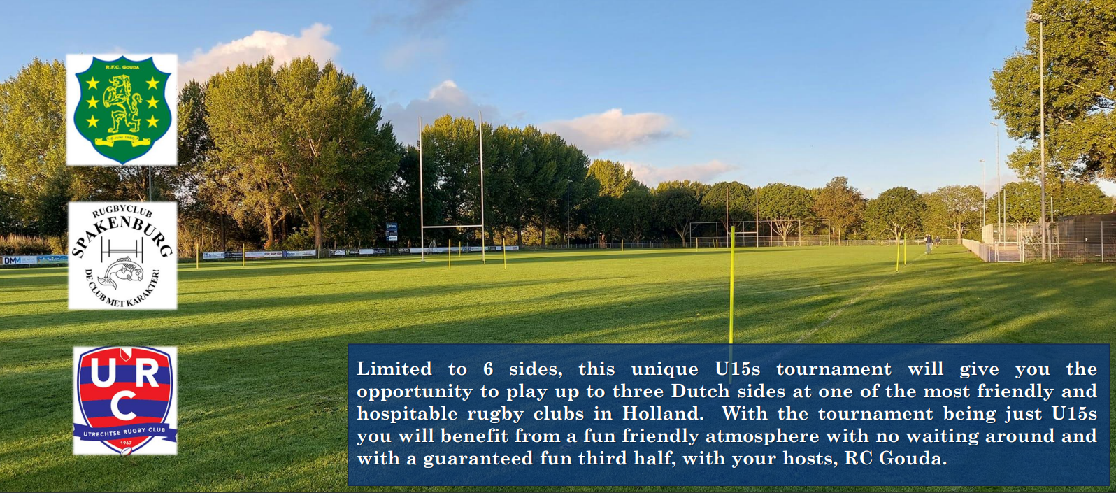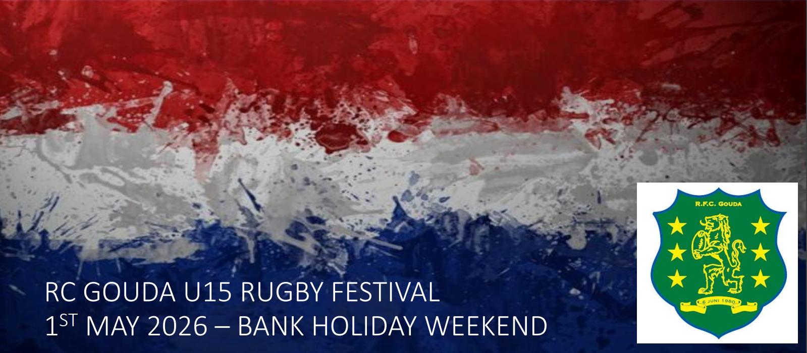 We are delighted to offer this unique U15 specific rugby festival hosted once again by Rugby Club Gouda, after an incredible inaugural running in 2025. RC Gouda are very hospitable and are longtime hosts of our touring teams; they love having visiting rugby teams, so this will be a great day out for your group!